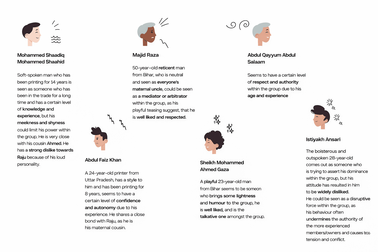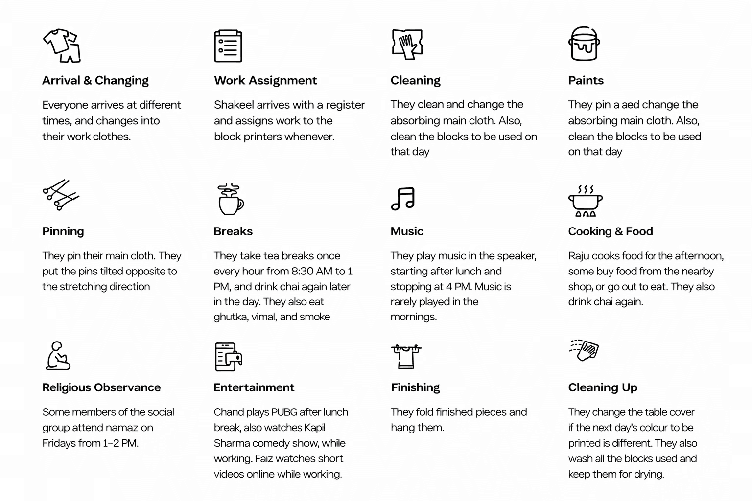 This project involved immersive ethnographic research within a hand-block printing workspace to understand the lived experiences, social dynamics, and cultural identity of the printers.